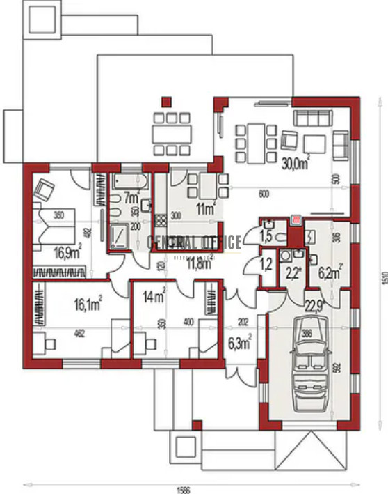 - pokój dzienny: 30m2