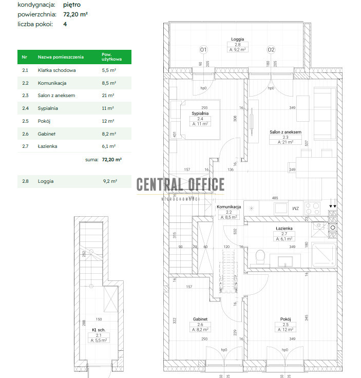 Oferta dotyczy mieszkania o powierzchni: 72,20 m² | Piętro